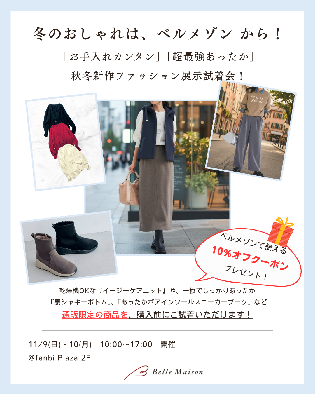 大阪店fanbi Plaza 2Fにて、カタログ通販「ベルメゾン」の秋冬ファッション特別展示会を開催!