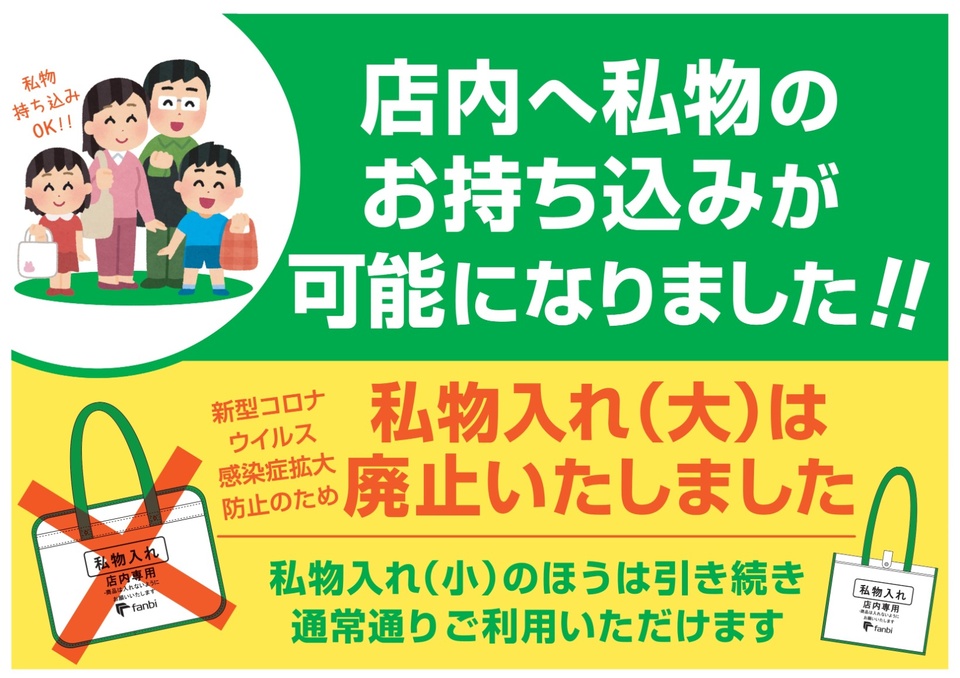 店内へ私物のお持ち込みが可能になりました!(大阪店・九州店)