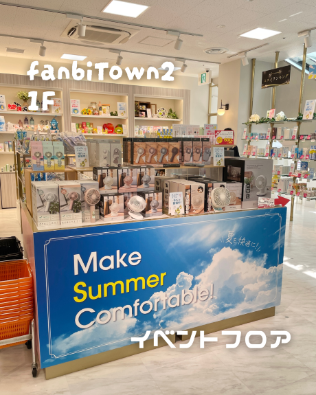 TOWN 2 2025/07/11(金) 2ビル1階 イベントフロア 2ビル各フロアのおすすめ商品を紹介中! fanbiTown2-1F イベントフロア fanbiTown2の各フロアのおすすめ商品が勢ぞろいしたイベントフロアができました! 日焼け止めや化粧品はランキング形式でご紹介中! 取扱いフロアは寺内公式キャラクター「ワクワク&ドキドキ」イラスト付きのポップが教えてくれます。 入店時にはぜひチェックしてください。 #fanbiTown2-1階 イベントフロア売場 品切れの際はご容赦ください。