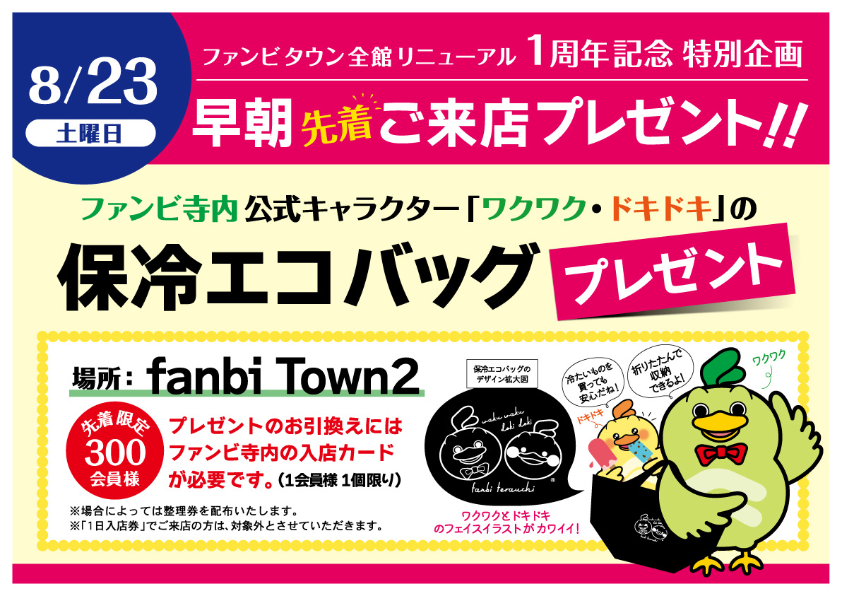 8/23(土)早朝ご来店プレゼントのお知らせ(保冷エコバッグ)